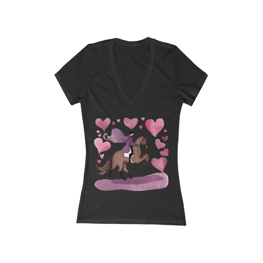 Horse Lover Short Sleeve Deep V-Neck Tee [For Dressage Lovers]
